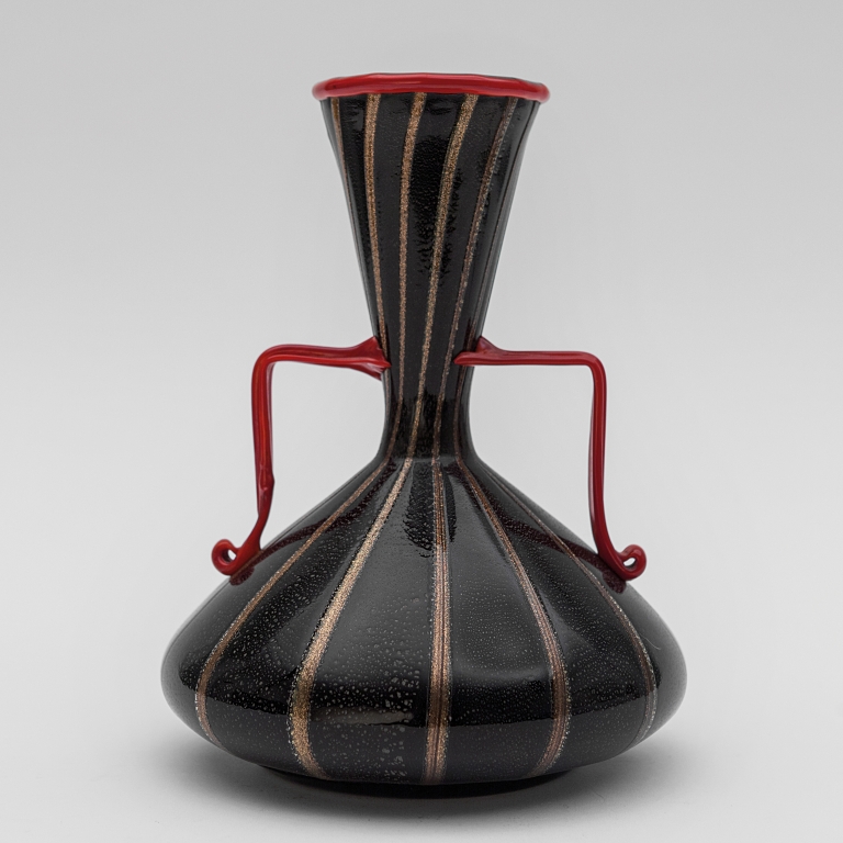 FRATELLI TOSO Un vaso in vetro nero con applicazione di foglia d'argento...