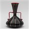 Un vaso in vetro nero con applicazione di foglia d'argento intervallato da canne di avventurina, anse e bordo in pasta vitrea rossa, circa 1930.