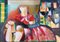 VITTORIOMARIA DI CARLO S. Marco in Lamis (Fg) 1939  Figura con sari sari olio e collage su tela cm. 70x100, firma in basso a destra e al retro, certificato di garanzia della Galleria Mimmo Massante allegato.