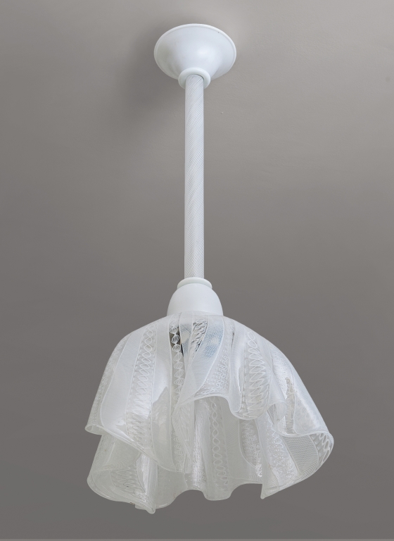 FULVIO BIANCONI, VENINIUna lampada a sospensione, anni '50. Vetro lattimo,...