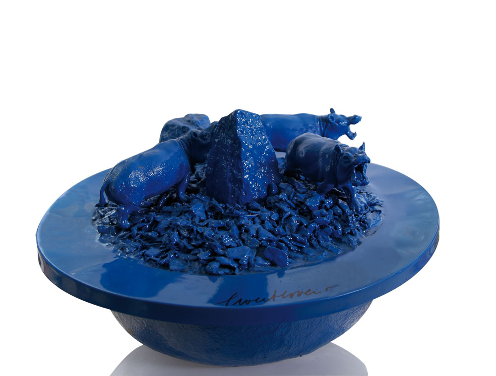 WILLIAM SWEETLOVE Ostenda (Belgio) 1949 Three cloned blue hippos, 2006 resina epossidica e plastica cm. 60x60x45, firma sul vaso, dichiarazione d'autenticità dell'artista su foto, pubblicato sul catalogo Cracking Art Revolution a cura di Piero Adorno, Claude Lorent e Francesco Santaniello, edizioni Skira (MI), pagina 151.