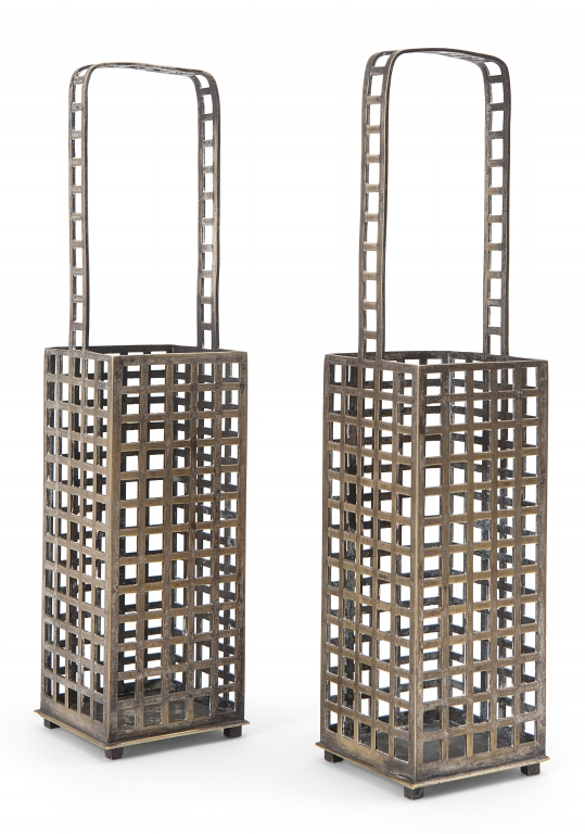 JOSEPH HOFFMANNUna coppia di cestini portafiori, 1905. Metallo argentato....