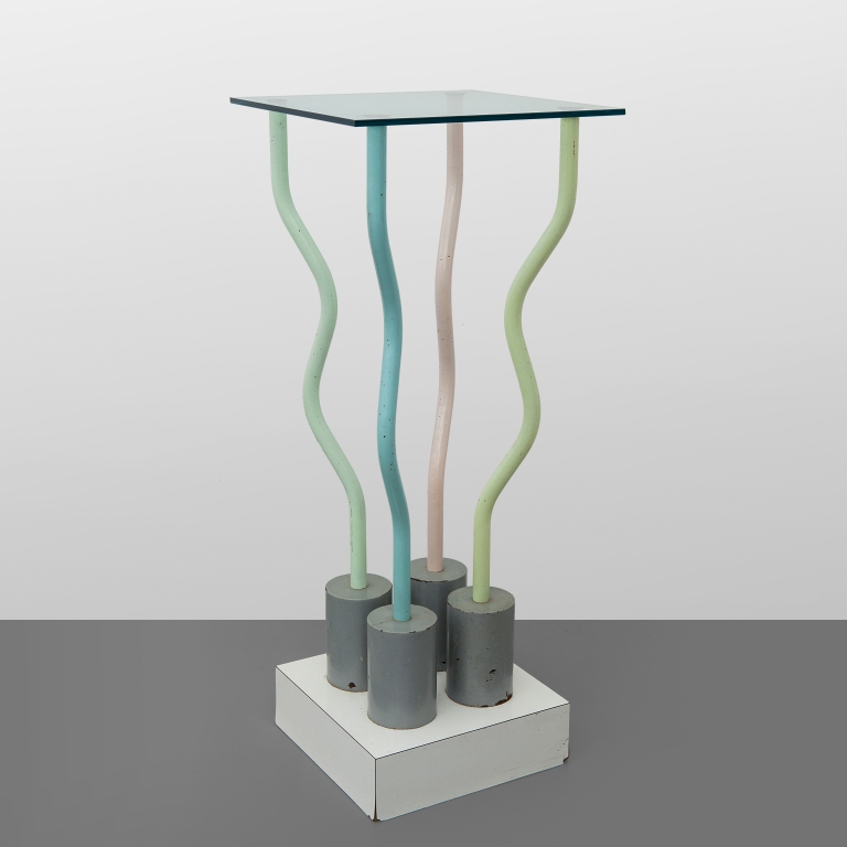 Plastic laminate, varnished steel, and crystal top.
