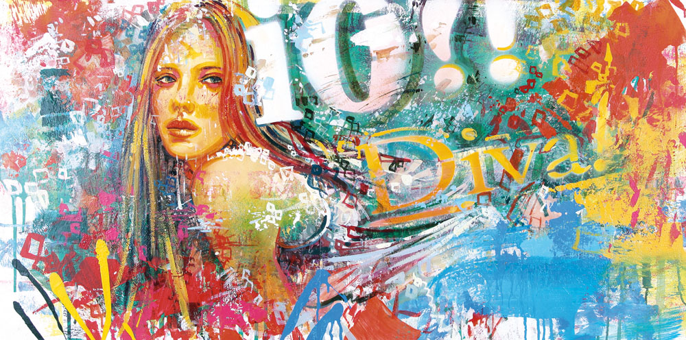 MAURIZIO DELVECCHIO Basilea (Svizzera) 22/05/1962 Io?! Diva, 2004 olio su tela cm. 60x120, firma, titolo, anno e tecnica al retro, dichiarazione d'autenticità dell'artista su foto.