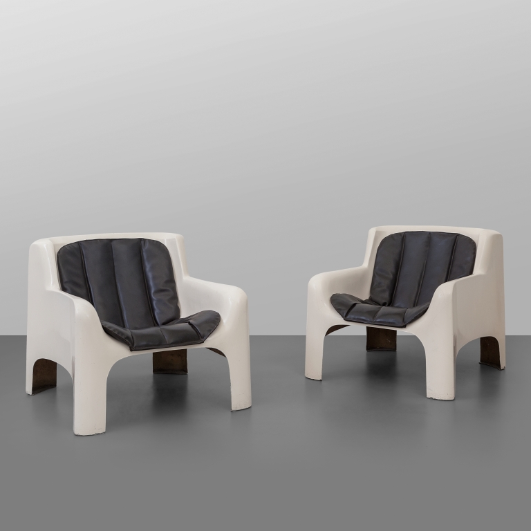 CARLO BARTOLIDue poltrone 'Gaia' per ARFLEX, 1967. Vetroresina, cuscini...