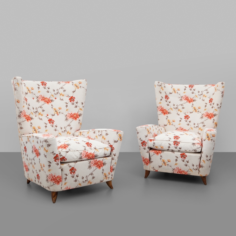 PAOLO BUFFA Due poltrone, primi anni '50. Struttura e gambe in legno,...
