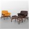 Due poltrone "849" e uno sgabello "849/S" per CASSINA, 1956.