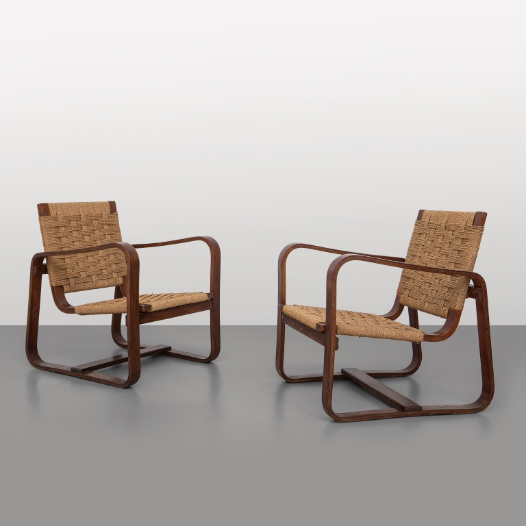 GIUSEPPE PAGANO POGATSHNIGDue poltrone per l'univesrsità Bocconi, 1942. Legno...