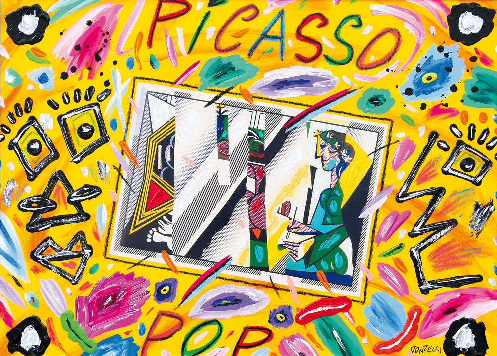 BRUNO DONZELLI Napoli 12/04/1941 Picasso pop olio, tecnica mista e collage su...