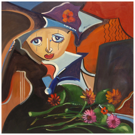 ROMANO ZIGOLI Pierrot Olio su faesite 70 x 70. Firma in a. al c.; sul verso etichetta dell’artista. ALLA MAGGIORE OFFERTA