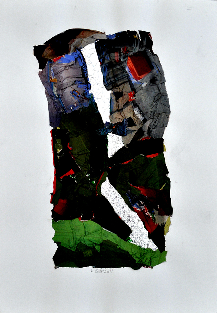 DINO CASTELVECCHI, Senza titolo, Collage su cartoncino, cm. 50×35,5, Firma in...