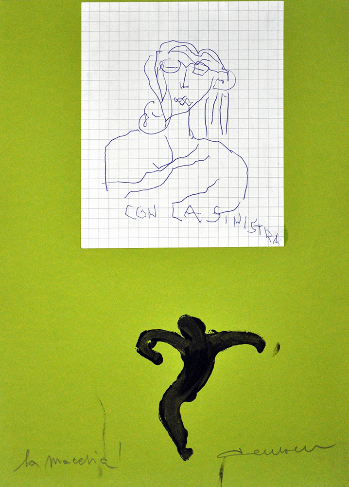 PAOLO DELLA BELLA, La macchia!, Tecnica mista e collage su cartoncino, cm. 29,5x21, Firma in basso a destra, Titolo in basso a sinistra