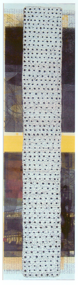 LUCIANO CARUSO, Paesaggio cosmico. Omaggio a Fontana, 1993, Scrittura e collage su carta, cm. 70x18, Firma, data e titolo sul retro