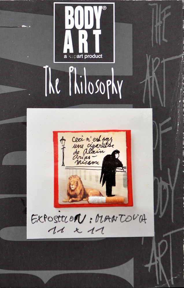 KAREL TRINKEWITZ, The philosophy, 1998, Collage su cartoncino stampato, cm. 17x10,7, Firma e dedica sul retro
