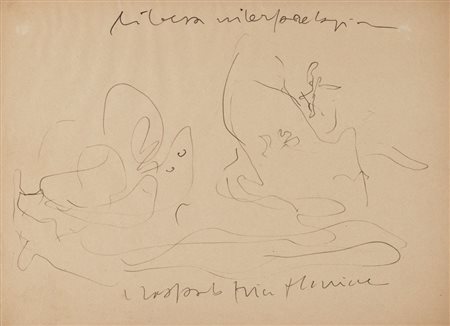 LUCIO FONTANA Rosario Santa Fe' (Argentina) 19/02/1899 - Varese 06/11/1968 - Studio di formella per la V porta del Duomo di Milano, inchiostro su carta cm. 21,2x29,6; opera registrata presso l'archivio Fontana al numero 699/24 che riporta il titolo su foto.