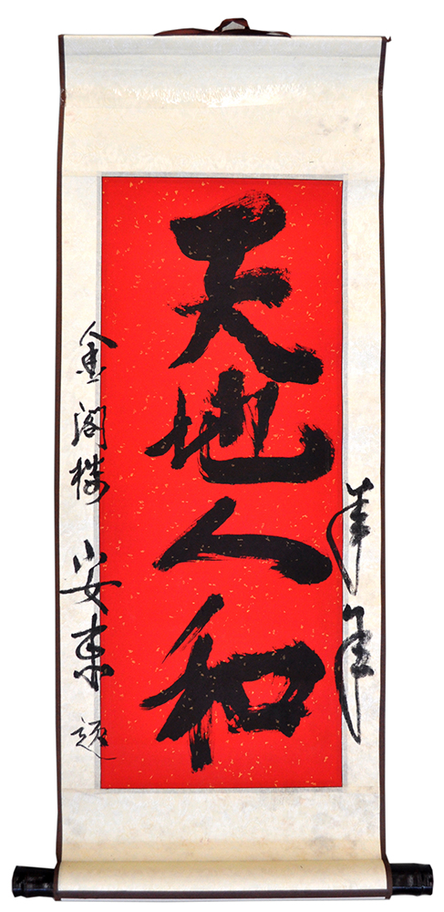 ANTHONY TANG, Senza titolo, 2015, Tecnica mista e scrittura calligrafica su carta telata, cm. 82x38, es. unico, Firma sul lato a caratteri cinesi