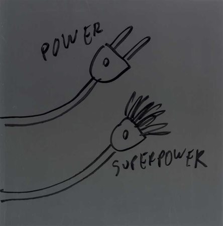 DAN PERJOVSCHI (1961) Power superpower 2008 Acrilico su tela 73 x 73 cm...