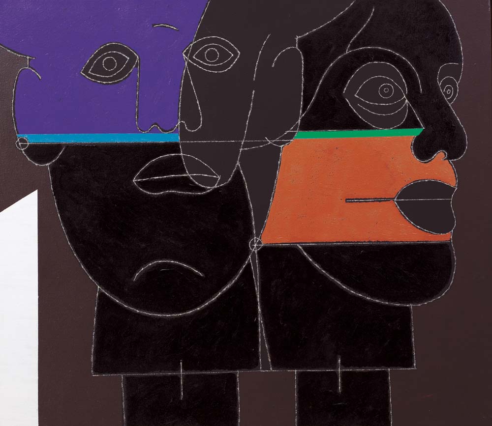 CONCETTO POZZATI Vo' Vecchio (Pd) 01/12/1935 Mascheramento, 2003 acrilico e smalto su tela cm. 70x80, firma, titolo e anno al retro, dichiarazione d'autenticità e archivio della fondazione Concetto Pozzati su fotografia.