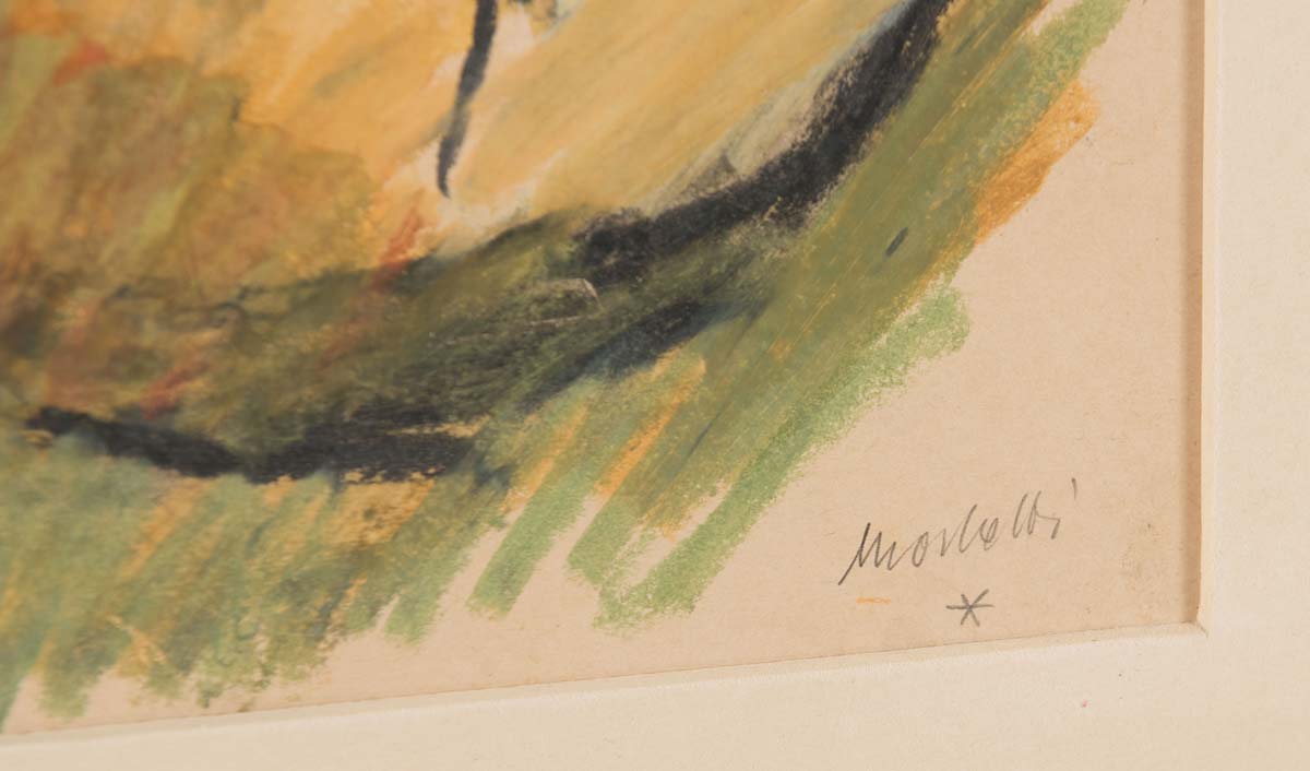 Ennio Morlotti (1910 - 1992), “Nudo”. Pastelli a cera su carta, firmato in basso a destra Morlotti, H cm 45.5x29.5 Opera accompagnata da doppia autentica su fotografia della Galleria La Loggia - Bologna in data 20.11.82