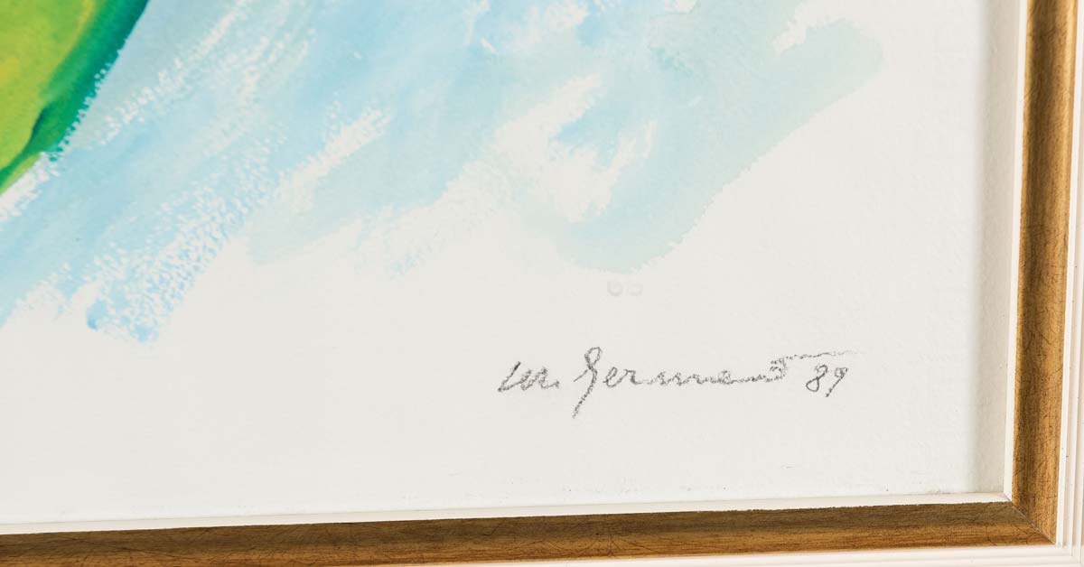 Mimmo Germanà (1944 - 1992), “Senza Titolo”, 1989. Acquerello su carta, firmato e datato in basso a destra M. Germanà 89, H cm 56x76 Opera accompagnata da certificato di autenticità dell’Archivio Generale dell’Opera di Mimmo Germanà, con numero di Archivio 020112C89, in data 14.1.2012
