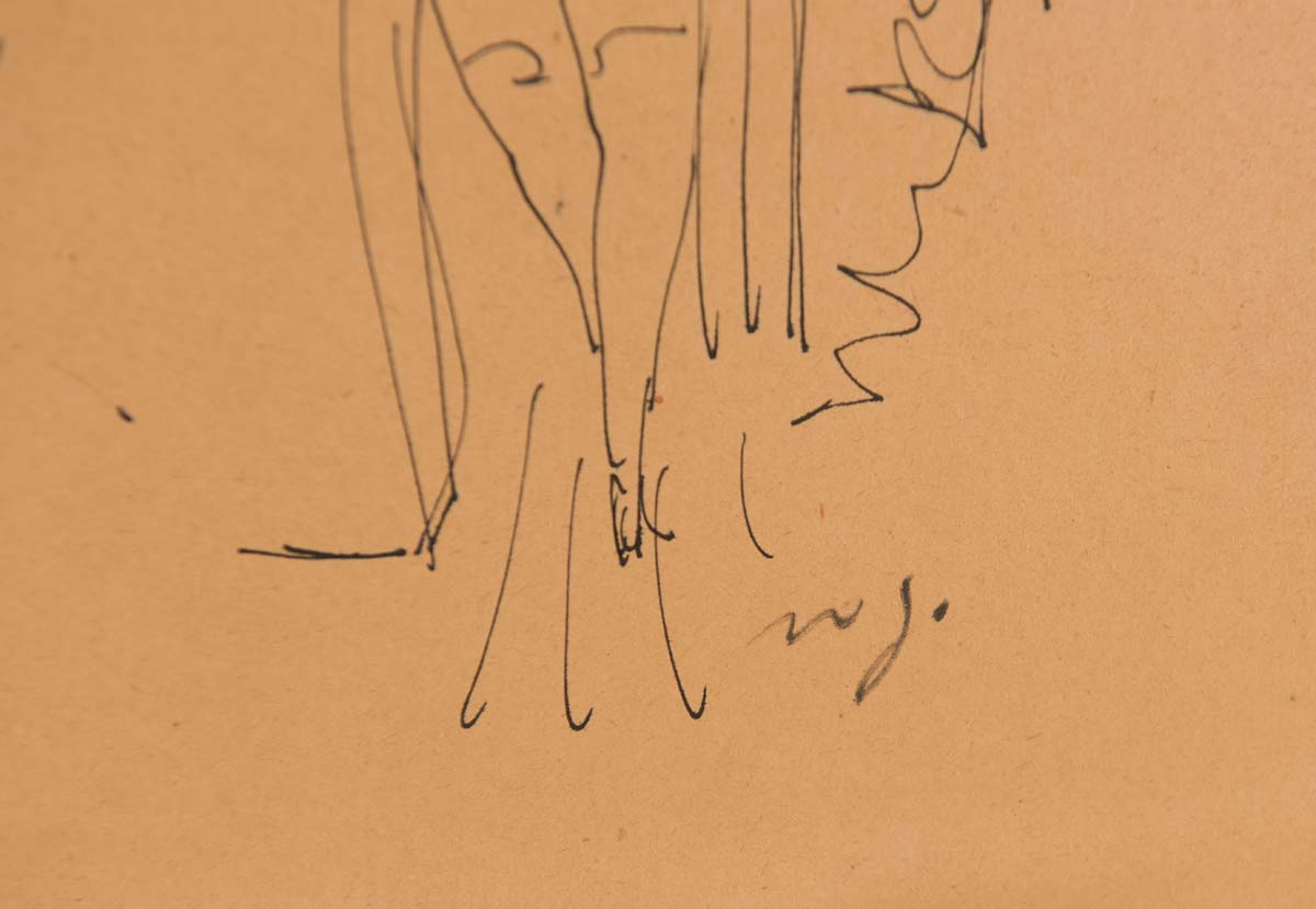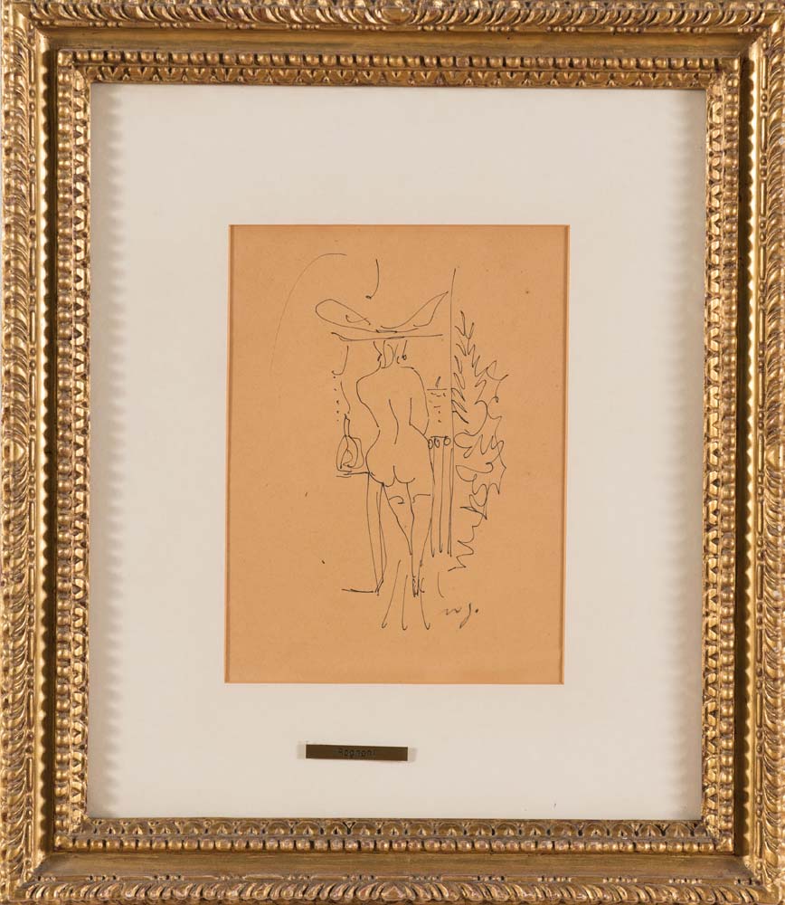 Franco Rognoni (1913 - 1999), “Nudo di schiena”. Biro su carta, siglato in basso a destra, H cm 26.5x19.5
