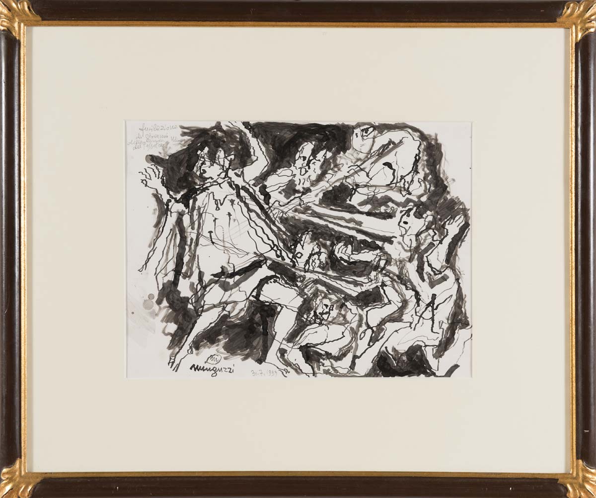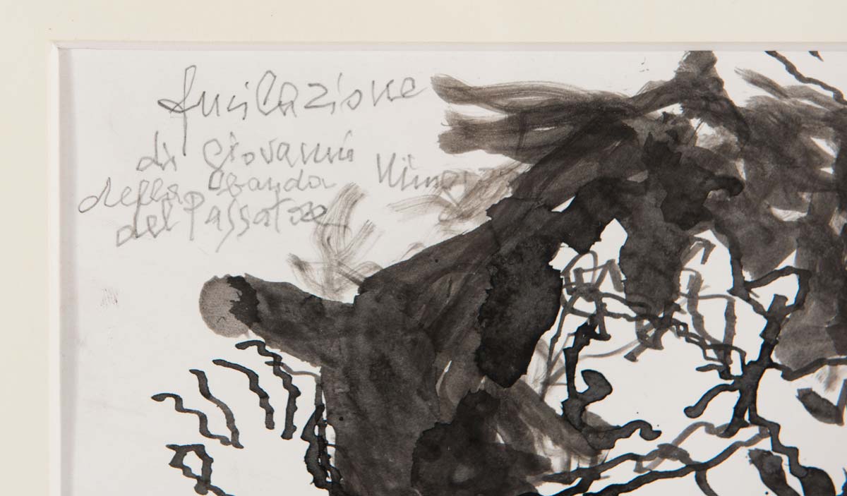 Luciano Minguzzi (1911 - 2004), “Fucilazione di Giovanni Minghetti della Banda del Passatore”, 1999. Tecnica mista su carta, firmata e datata in basso a sinistra Minguzzi 31-7-99, H cm 35.5x47.5 Opera accompagnata da certificato di autenticità della fondazione Luciano Minguzzi, Milano