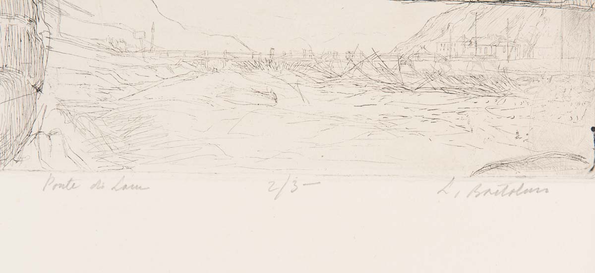 Luigi Bartolini (1892 - 1963), “Ponte di Lana”. Incisione su carta, firmata in basso a destra L. Bartolini, numero tiratura in basso al centro 2/3, titolo in basso a sinistra, H mm 352x510, lastra mm 120x339