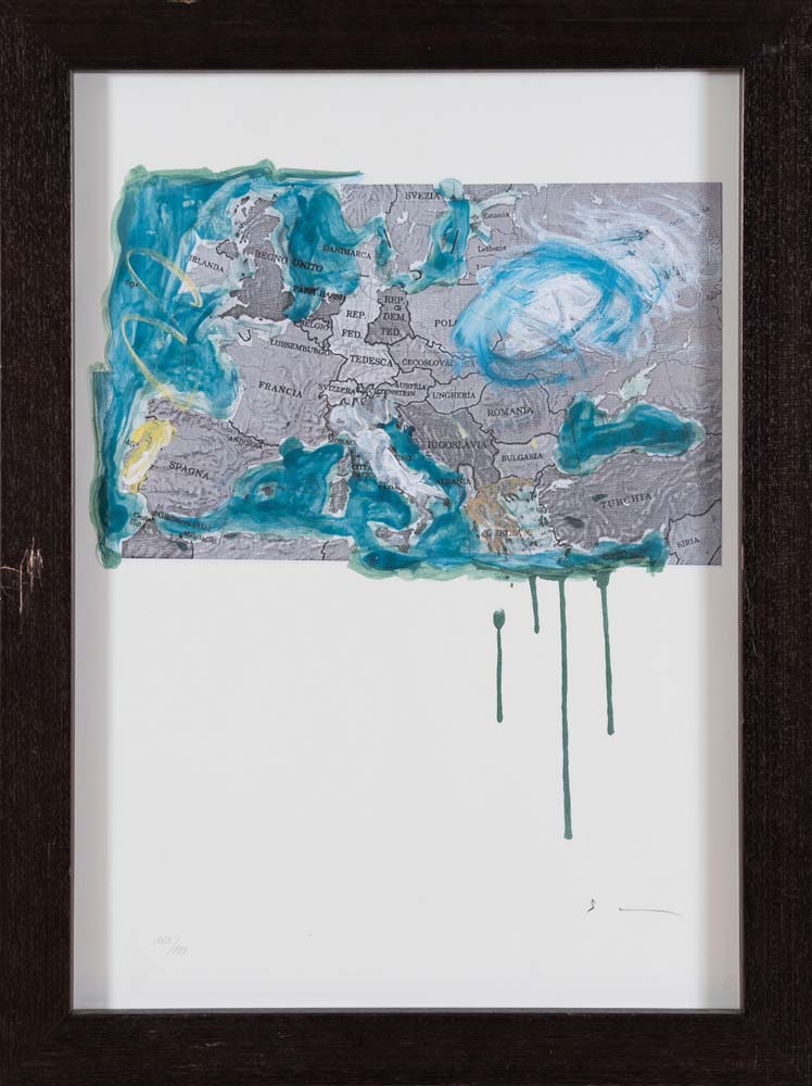 Mario Schifano (1934 - 1998), “Europa”. Litografia su carta, firmata in basso a destra Schifano, in basso a sinistra numero di tiratura 160/199, H mm 700x500