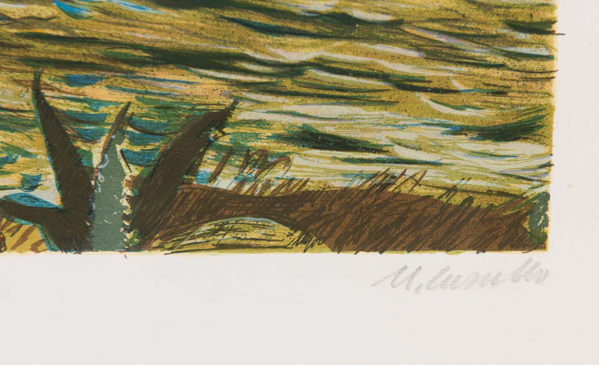 Michele Cascella (1892 - 1989), “Paesaggio marino”. Litografia a colori su...
