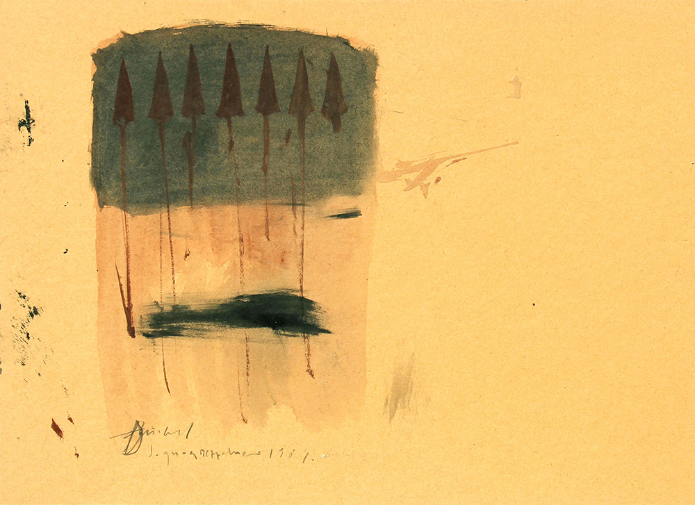 Piero PIZZI CANNELLA (Rocca di Papa 1955-11-20 ) Senza titolo 1989 tecnica mista su cartone cm. 34.5 x 50Firma, data "Pizzi Cannella 1989" (in basso a sinistra) Autentica dell'artista su fotografia