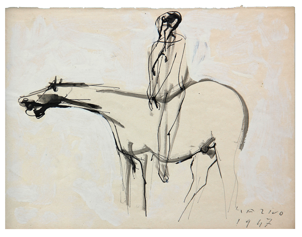 Marino MARINI (Pistoia 1901-02-27 Viareggio 1980-08-06) Cavallo e cavaliere 1947 tempera e china su carta cm. 30 x 40Firma, data "Marino 1947" (in basso a destra) Autentica della Fondazione Marino Marini in corso