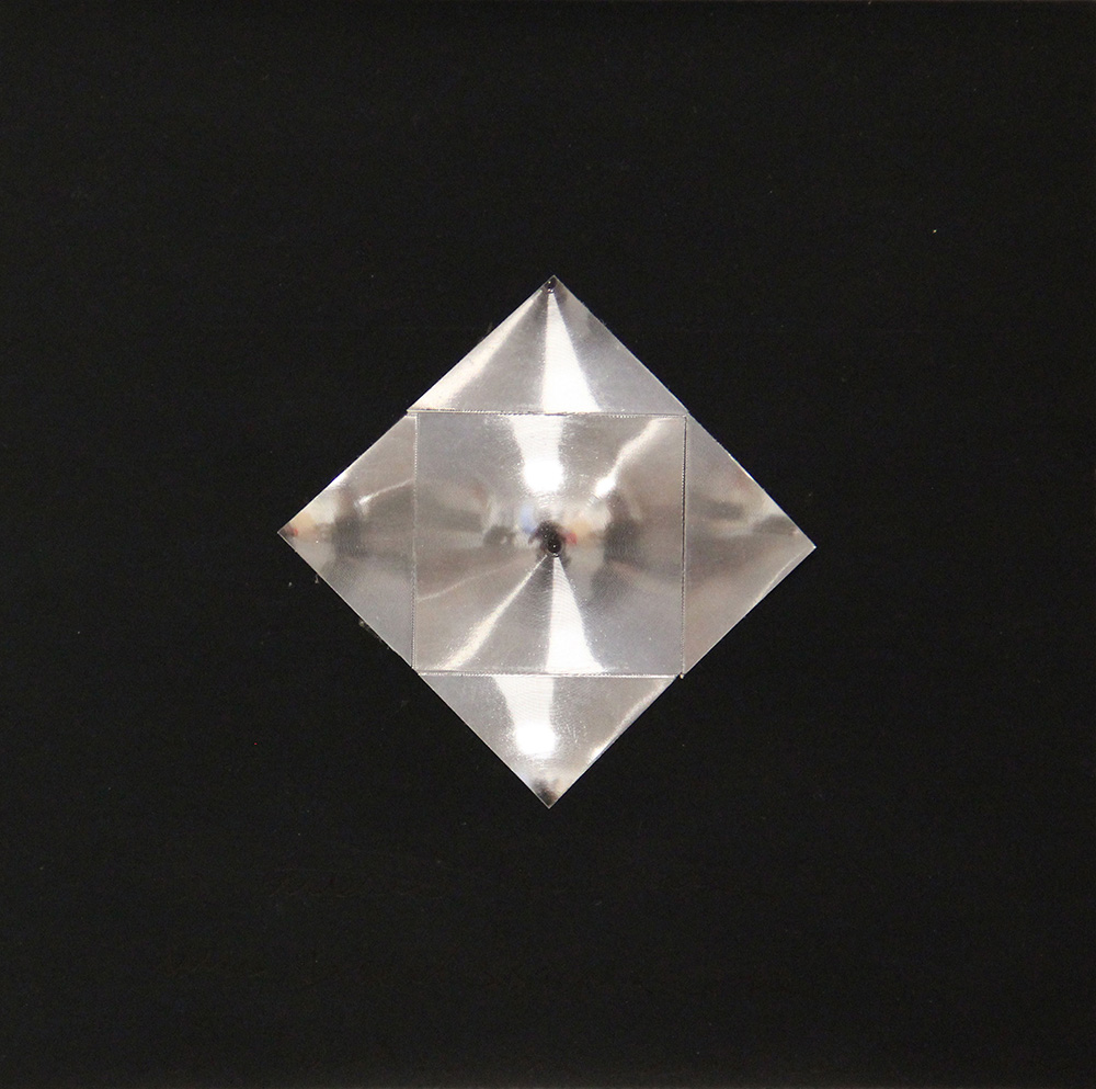 Getulio ALVIANI (Udine 1939-09-05 Milano 2018) Senza titolo anni 70 (1970 - 1979) collage di cartoncini cm. 14 x 14Dedica ad personam, firma "Alviani" (in basso)