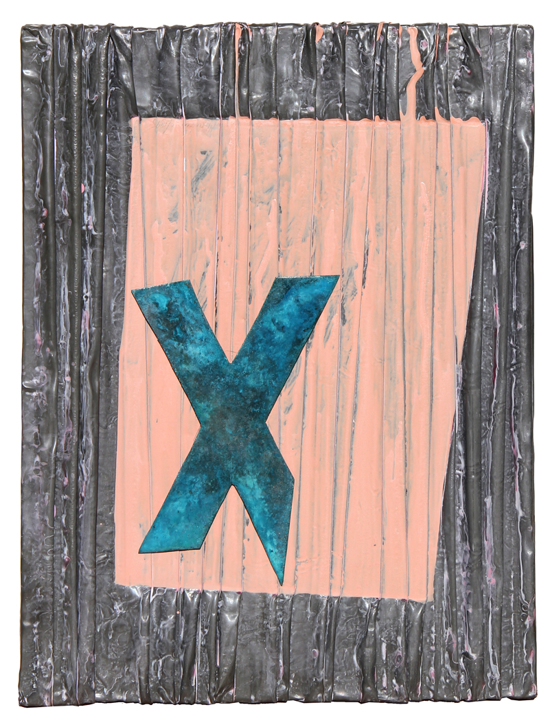 Umberto MARIANI (Milano 1936-11-16 ) Senza titolo 1995 tecnica mista e rame su piombo cm. 44.5 x 33.5Firma, data "Mariani, 2/1995" (in basso a destra) Firma, data "U. Mariani, 2/1995" (al retro) Autentica dell'artista su fotografia