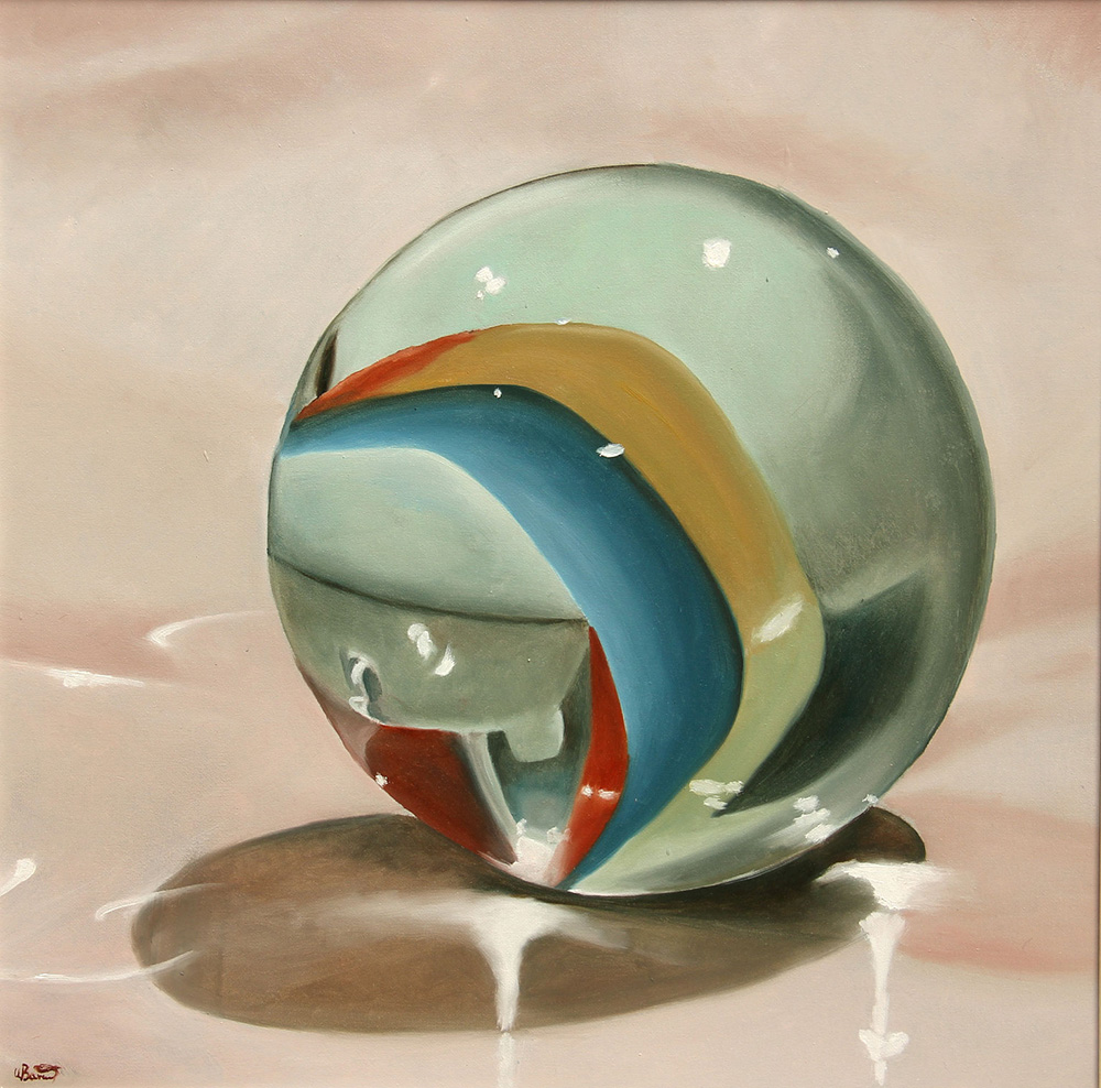 Alessandra BARUZZO (La Spezia, 1972 ) La bilia 2017 olio su tela cm. 40 x 40Firma "Baruzzo" (in basso a sinistra) Firma, luogo, data, firma, titolo "Alessandra Baruzzo, Sarzana, 2017, Alessandra Baruzzo, La bilia" (al retro)