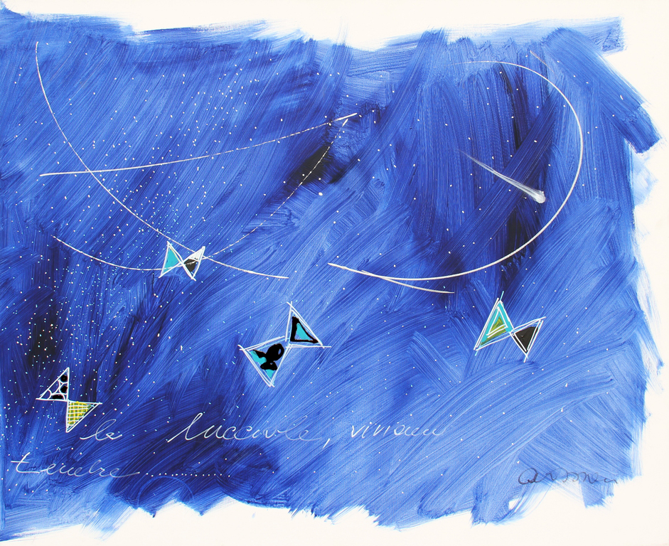 Antonio DEL DONNO (Benevento, 1927 ) Le lucciole, viviamo, tenebre... tecnica mista su tela cm. 100 x 120Titolo "Le lucciole, viviamo, tenebre..." (in basso a sinistra); firma "A. Del Donno" (in basso a destra) Firma "A. Del Donno" (al retro)