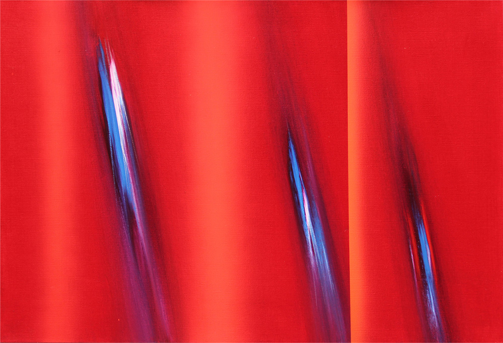 Ennio FINZI (Venezia 1931-01-02 ) Il verso della luce in rosso olio su tela cm. 70 x 100Firma, titolo, firma "Finzi, Il verso della luce in rosso, Finzi" (al retro) Autentica dell'artista su fotografia