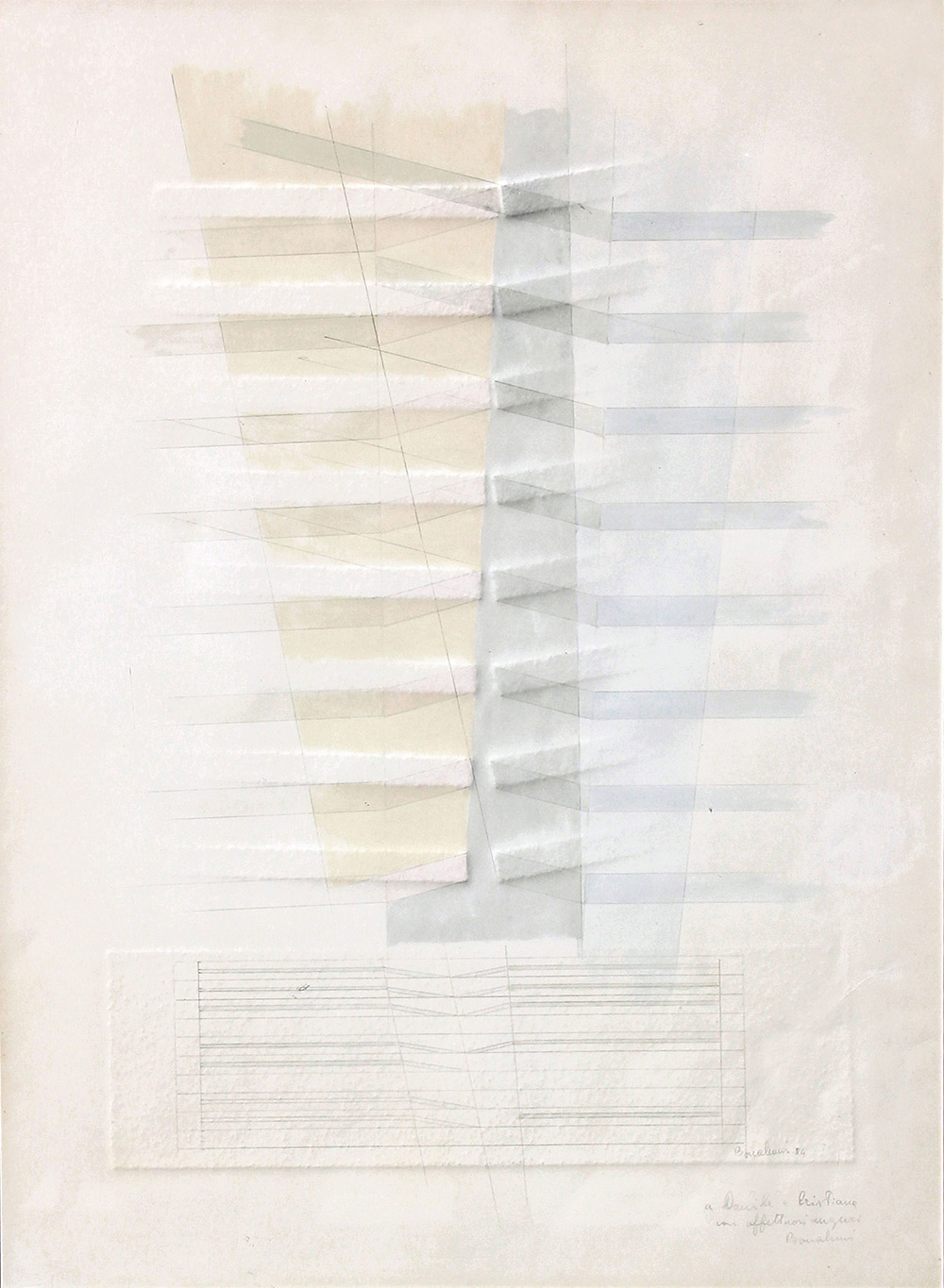 Agostino BONALUMI (Vimercate (MI) 1935-07-10 Desio, 2013 ) Senza titolo 1984 matita e acquarello su carta estroflessa cm. 70 x 50Firma, data, dedica "Bonalumi, 84" (in basso a destra) Etichetta e timbro di Lattuada Studio, Milano (al retro) Autentica dell'Archivio Bonalumi, con n. 84-005 C