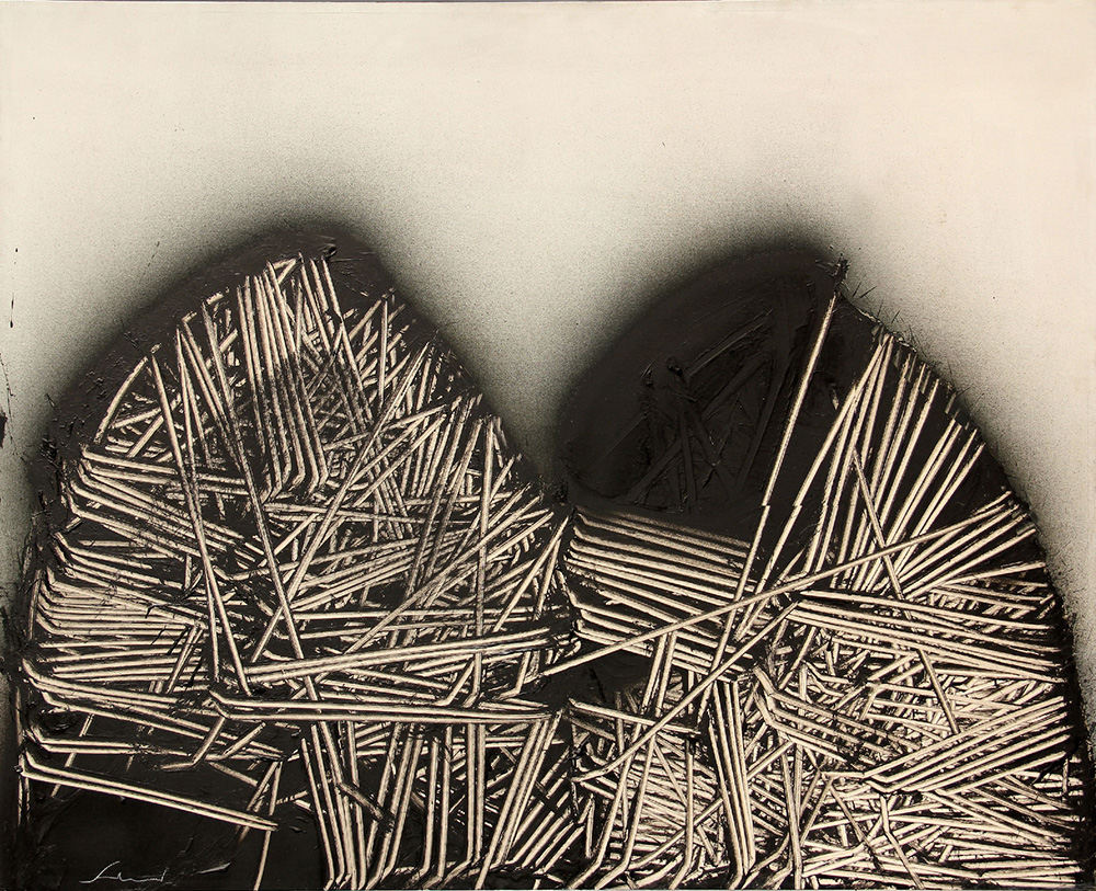 Emilio SCANAVINO (Genova 1922-02-28 Milano 1986-11-28) Costretto 1969 olio su tavola cm. 72 x 91G. G. Scanavino, C. Pirovano "Scanavino. Catalogo generale. Volume primo", Electa, Milano 2000, p. 368, ill. 1970 22 (la datazione indicata sul catalogo è errata) "Emilio Scanavino", Dipaoloarte, Bologna, ottobre 2007, pp. 24-25 Firma "Scanavino" (in basso a sinistra) Firma, luogo, data, tecnica, misure, titolo "Scanavino, Calice, 1969, olio su tavola, 92x72, Costretto"; etichetta e timbro della Galleria del Naviglio, Milano (al retro)