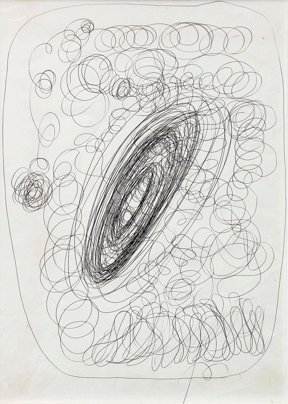 Lucio FONTANA (Rosario Santa Fè 1899-02-19 Varese 1968-11-06) Illustrazione per Six Contes de La Fontaine 1963 inchiostro su carta cm. 50 x 35Firma "Fontana" (in basso a destra) Autentica dell'Archivio Lucio Fontana, con n. 3981/1