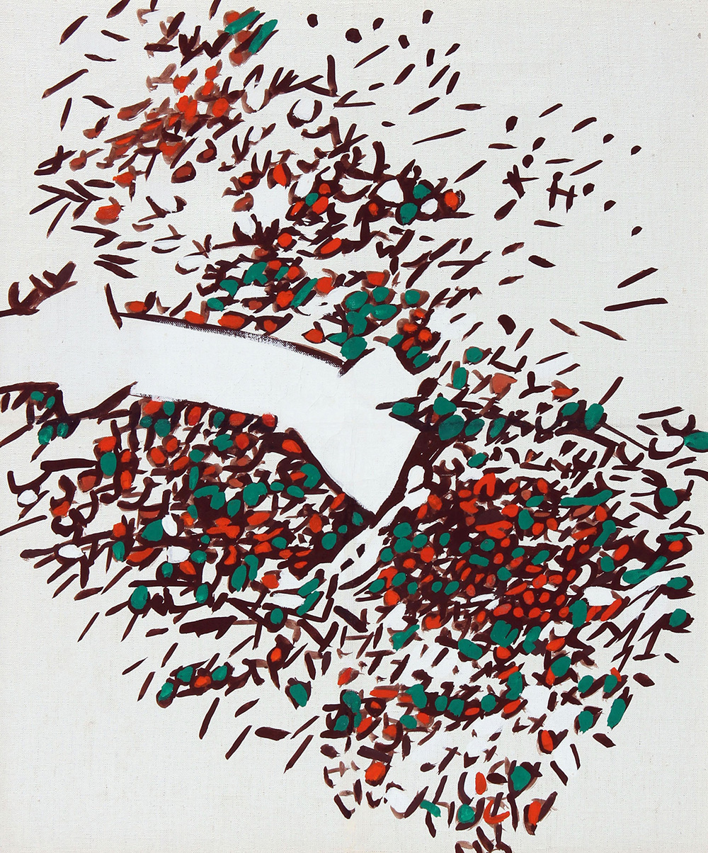 Antonio SANFILIPPO (Partanna (Trapani) 1923-12-08 Roma 1980-02-02) Senza titolo 1968 olio su tela cm. 46 x 40G. Appella, F. D'Amico, "Antonio Sanfilippo Catalogo generale dei dipinti dal 1942 al 1977", De Luca Editori d'Arte, Roma, 2007, p. 290Misure, firma "40x46, Sanfilippo"; dichiarazione di autenticità di Antonella Sanfilippo (al retro)
