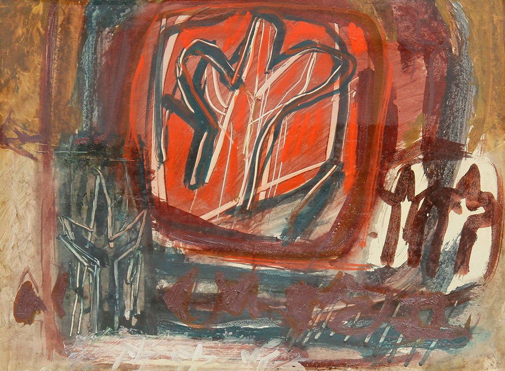 Riccardo LICATA (Torino 1929-12-20 Venezia, 2014 ) Senza titolo 1959 tecnica mista su cartone cm. 34.5 x 49.5Futura pubblicazione sul catalogo generale delle opere dell'artista (in preparazione)Data, firma "59, Licata" (in basso a destra) Etichetta della Pinacoteca Civica Amedeo Modigliani (al retro) Autentica dell'artista su fotografia Autentica dell'Archivio Generale Riccardo Licata, con n. 084/TMT008