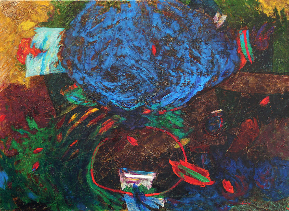 Gianni DOVA (Roma 1925-01-08 Pisa 1991-10-14) Tromba d'aria ai Ronchi 1984 olio su tela cm. 80 x 100Firma "Dova G." (in basso a destra) Titolo, firma, data "Tromba d'aria ai Ronchi, Dova, 13-7-84" (al retro) Autentica dell'artista su fotografia
