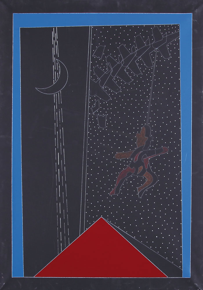 FRANCO ANGELI Roma 14/05/1935 - Roma 12/11/1988 Orientale, 1987 smalto su tela cm. 100x70, firma e titolo al retro, opera registrata presso l'Archivio Franco Angeli (Angiolino Calestani) come da dichiarazione su foto.