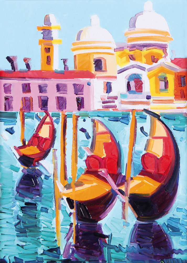 ATHOS FACCINCANI Peschiera (Vr) 29/01/1951 Gondole a Venezia, 1998 olio su tela cm. 35x25, firma in basso a destra, titolo al retro, dichiarazione d'autenticità dell'artista e archivio numero FA 9895 a cura della Arte Capital (BS) su foto, certificato della Telemarket (BS) allegato.