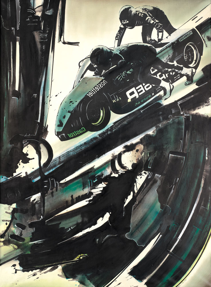 GIANNI BERTINI Pisa 31/07/1922 - Caen (Normandia) 08/07/2010 Senza titolo, 1986 tecnica mista ed emulsione su tela (mec-art) cm. 160x118, firma e anno in basso a destra, etichette dell'Archivio Gianni Bertini e della Galleria Elleni al retro, opera registrata presso l'Archivio Gianni Bertini come da dichiarazione con foto allegata.