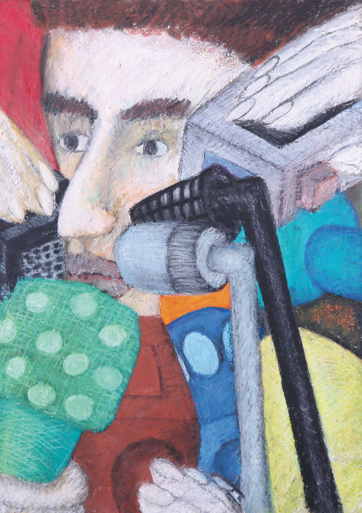 MARCO CINGOLANI Como 21/02/1961 Conferenza stampa, 1993 tecnica mista su tela...