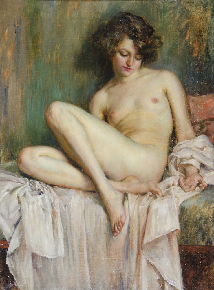 Robert Auer 1873-1952 "Bellezza sul letto" cm. 63x46 - olio su tela Firmato alto a d. e datato 1925.