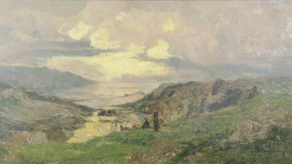 Giuseppe Gheduzzi 1889-1957 "Tramonto nella valle cm. 40x70 - olio su cartone Firmato b. a d.