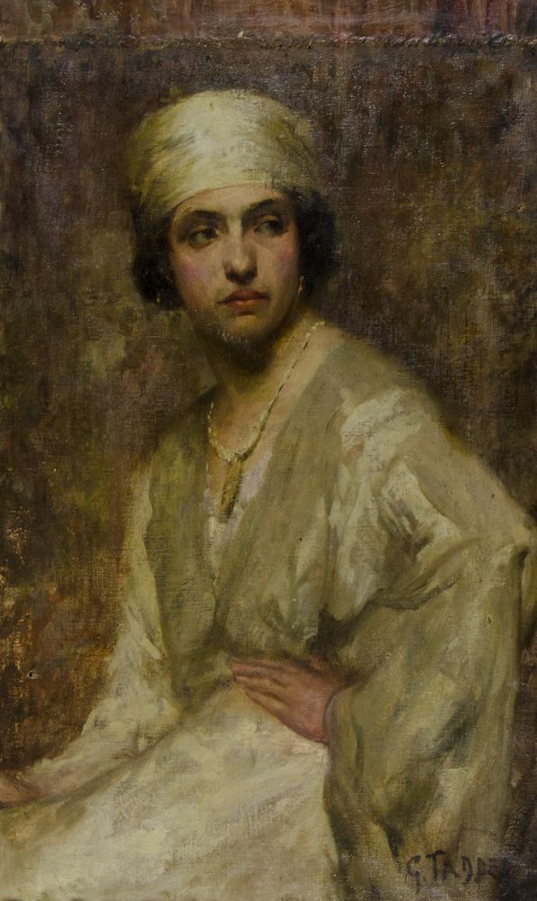 Giorgio Taddei 1892-? "Ritratto di signora" cm. 98x60 - olio su tela foderata Firmato b. a d.