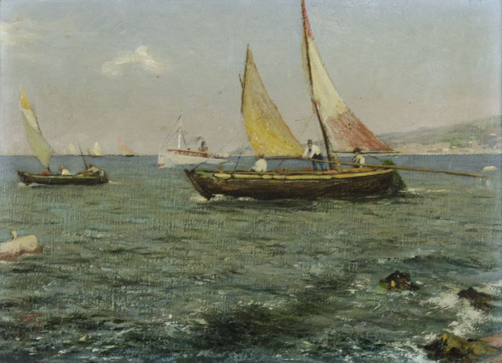 Pittore fine XIX secolo "Barche in partenza" cm. 20x28 - olio su tela